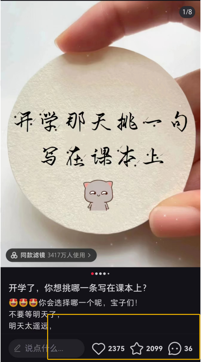 文案基本上都是跟上学相关的话题,所以精准定位了学生这类群体,流量自然就不会低!