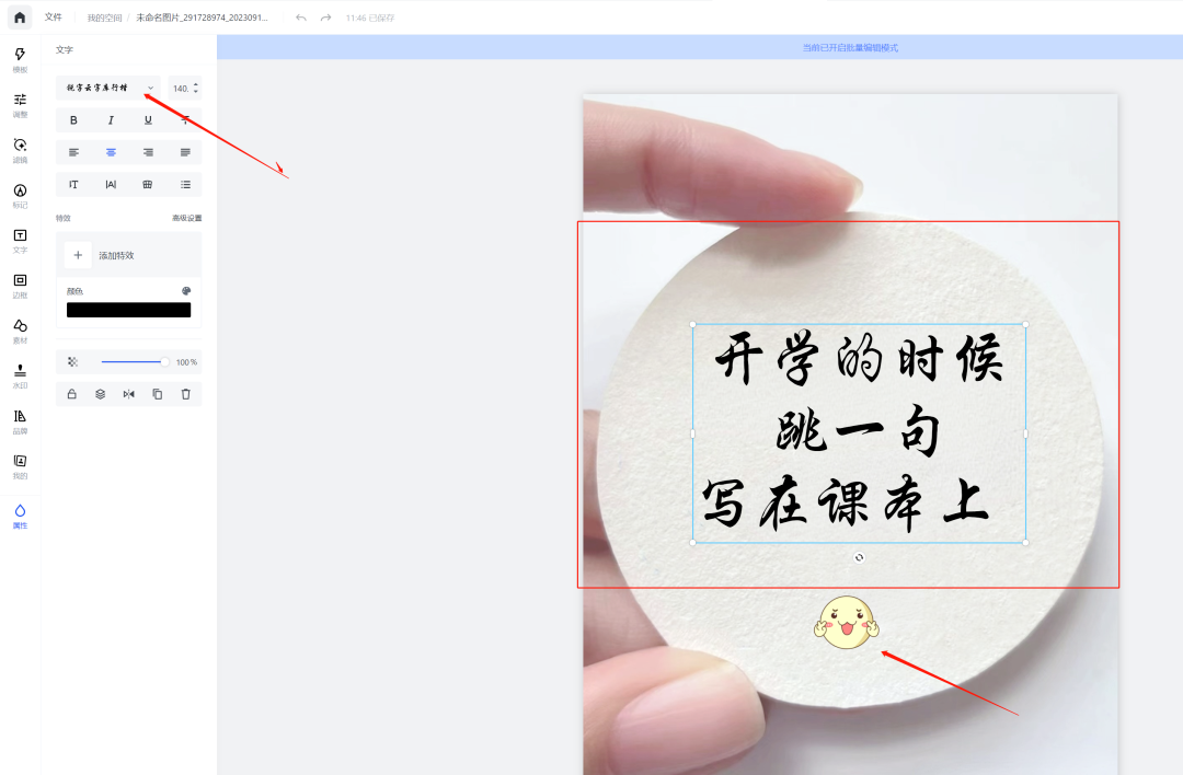 5. 可以适当加一个表情贴纸,最后导出图片即可