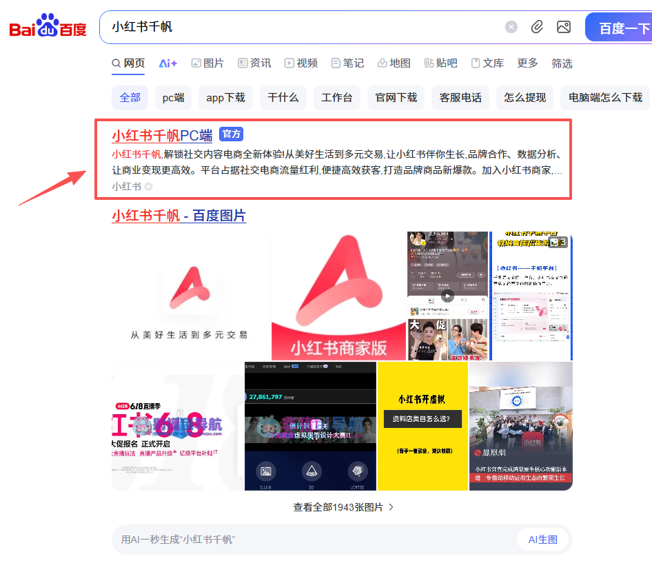 第 1 种:直接在百度上搜索 “ 小红书千帆 “,找到下面的入口,点击进入,用你开通店铺的那个小红书扫码登陆即可
