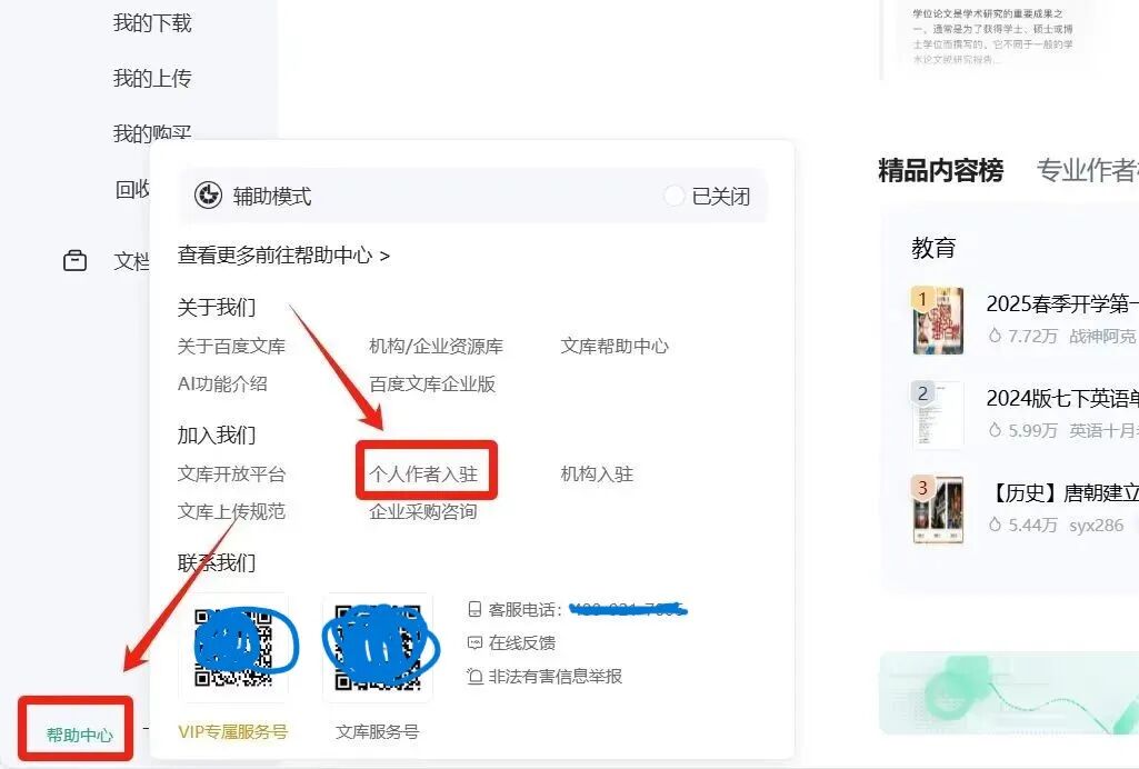 进入官网,然后在页面的左下角找到并点击【帮助中心】,再点击【个人作者入驻】。