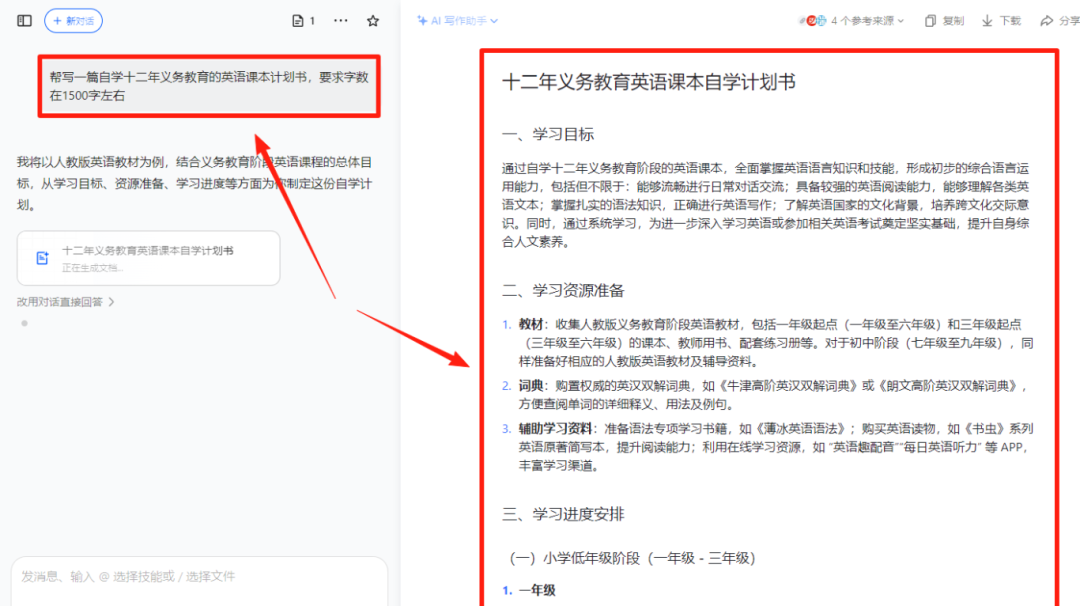下一步就是制作作品,如果自己没有啥资料的话,直接用AI去写就行,建议使用豆包或DeepSeek找一个合适的主题,告诉AI要写什么内容、写多少字数,不到3分钟,就能够生成一篇完整的原创文章。