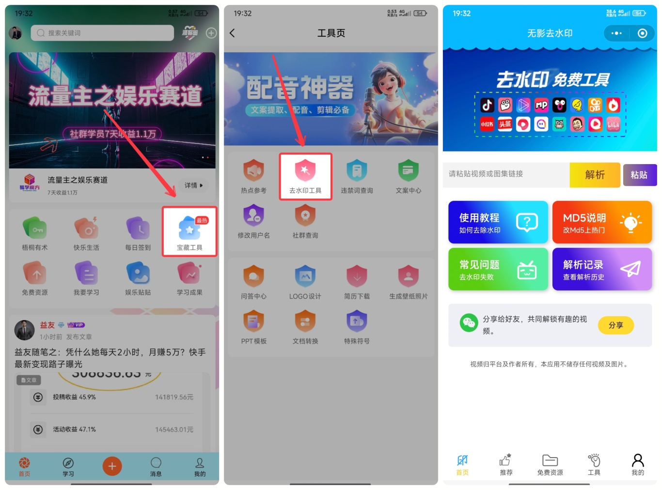 但是有一个地方,就是商品的封面和详情页,如果大家做不来的话,我们随便找一个销量比较高的别人小红书店铺的商品,找到之后,复制商品的地址 ( 右上角的箭头,复制链接 ),然后打开易学魔方APP ( 应用市场里面直接下载,注册的时候需要填写激活码 2345,不填写的话,里面的工具可能无法使用 ),有个宝藏工具,进去以后,有个去水印的工具,不含任何广告,非常方便。
