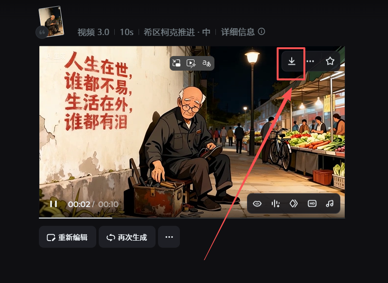 这个生成的时候会稍微久一点,大概需要2分钟左右,把自己觉得满意的视频下载下来,如果感觉不太满意就重新生成就好了。